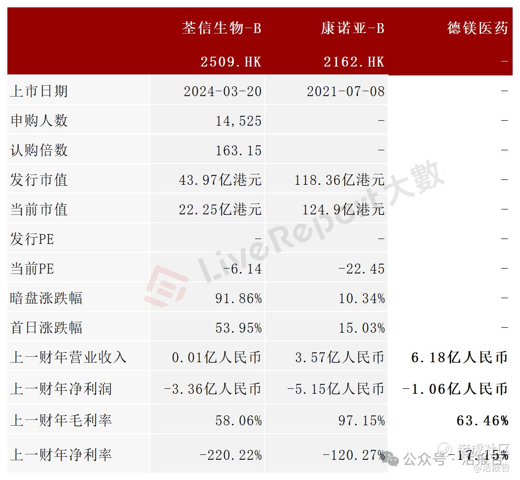 本次选取的同行业对比公司为:荃信生物-B(2509.HK)、康诺亚-B(2162.HK)