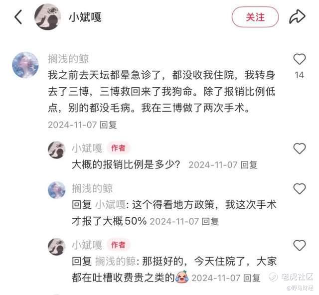 有网友表示,“我之前去天坛都晕急诊了,都没收我住院,我转身去了三博(脑科),三博(脑科)救回来了我狗命。除了报销比例低点,别的都没毛病。我在三博(脑科)做了两次手术。”