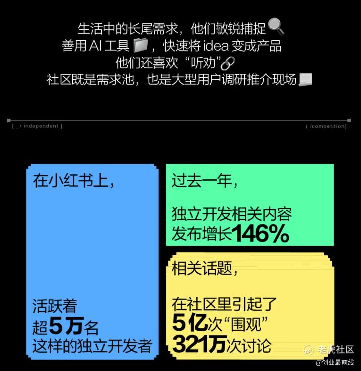 小红书内容社区的属性,天然与AI开发相关,其兴趣推荐和种草能力,孕育了独立开发者,也形成从产品孵化到产品走向市场的小小生态。
