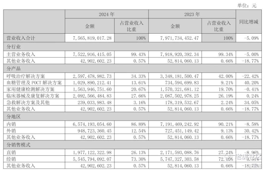 鱼跃医疗2024年营收75.66亿:扣非后净利14亿 同比降24%