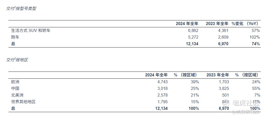 全年生活方式车型交付6862辆,同比增长57%;跑车则以超四成的交付量占比实现翻倍增长。