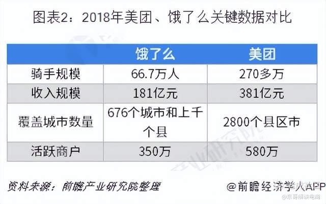 数据显示,2018年底,饿了么(包含已收购的百度外卖)市场份额达到38.1%,美团外卖已经达到58.6%反超饿了么。