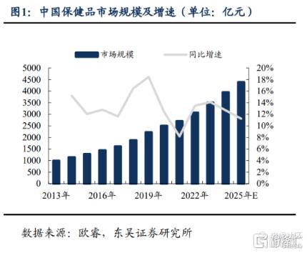 事实上,保健品行业潜力巨大,亦是需求与政策共振的赛道。随着我国居民人均可支配收入的不断提高、健康意识的提升以及人口老龄化的加剧,我国保健品市场将进一步扩容,迎来快速发展的黄金时期。从市场规模和增长趋势来看,2013年我国保健品市场规模为993亿元,到2023年已超过3500亿元。目前,中国保健品市场仍保持强劲增长势头,预计到2025年市场规模将突破4300亿元,整体复合年增长率(CAGR)保持在10%以上。