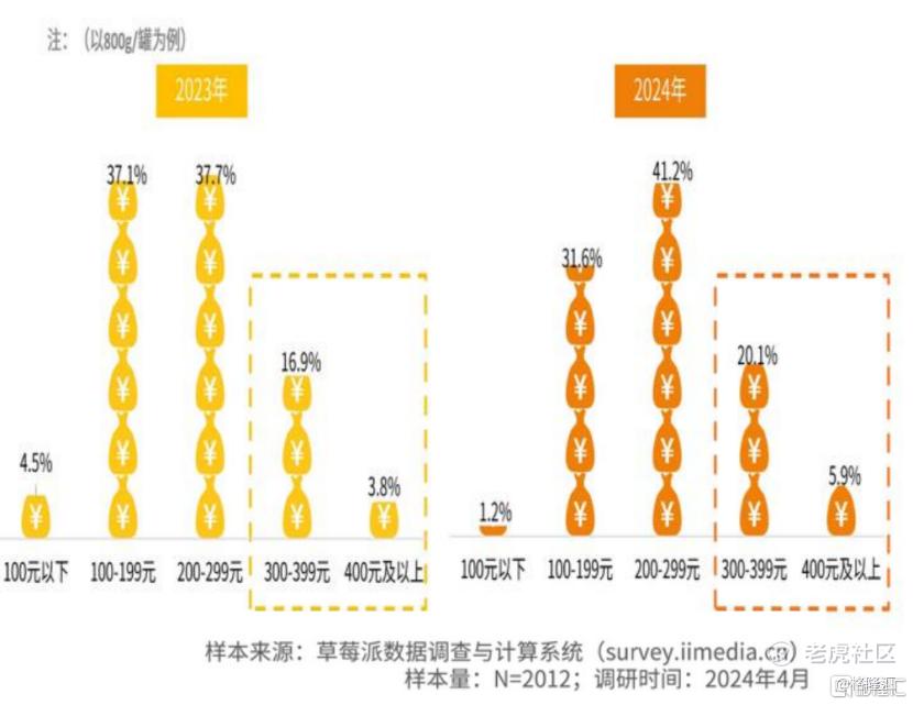 图:2023和2024年中国消费者购买婴儿奶粉价格分布