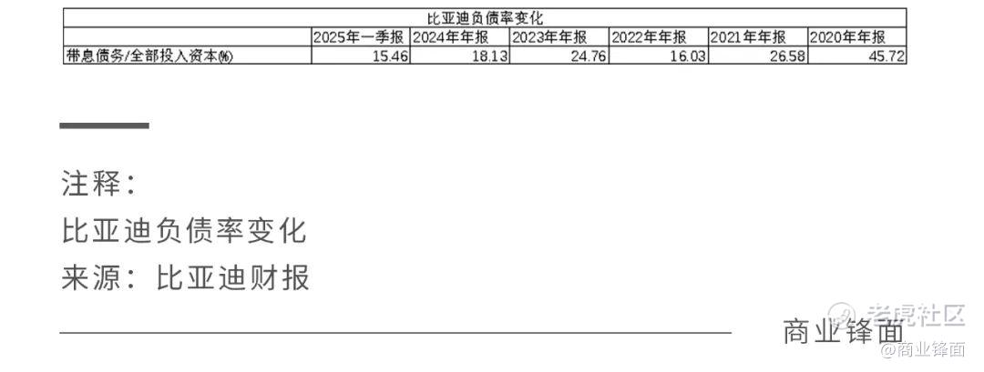 从现金流量表来看,自2023年以来,比亚迪经营活动现金流同比持续下降,核心原因在于存货大幅增加,2025年一季度存货规模达到1543.74亿元,同比增加约556亿元。同时,投资活动现金流支出也在持续增加,主要用于构建固定资产投资,规模达到372.76亿,同比增加约112亿。一季度筹资活动现金流大幅增长,得益于H股配售融资,吸收投资现金达约402亿。整体来看,比亚迪仍处于明显的扩产、扩量周期,而H股融资优化了资本结构,使得带息债务占全部资本投入(带息债务+股东权益)的比例从2020年的45.72%下降至目前的15.46%,为未来进一步扩张和增加财务杠杆创造了充裕空间。