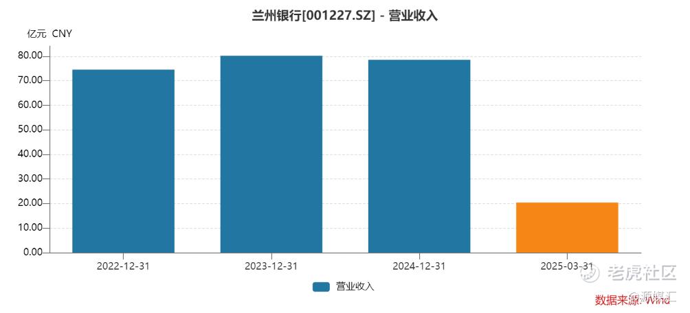 Wind数据显示,2022-2024年,兰州银行的营收分别为74.50亿元、80.16亿元、78.54亿元;归母净利润分别为17.34亿元、18.64亿元、18.88亿元。