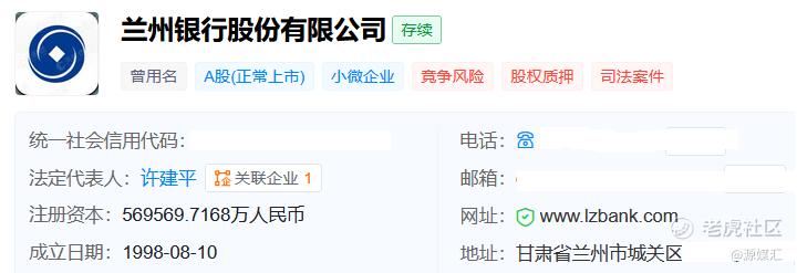 天眼查显示,兰州银行成立于1998年8月10日,注册资本为569569.7168万元,法定代表人是许建平。