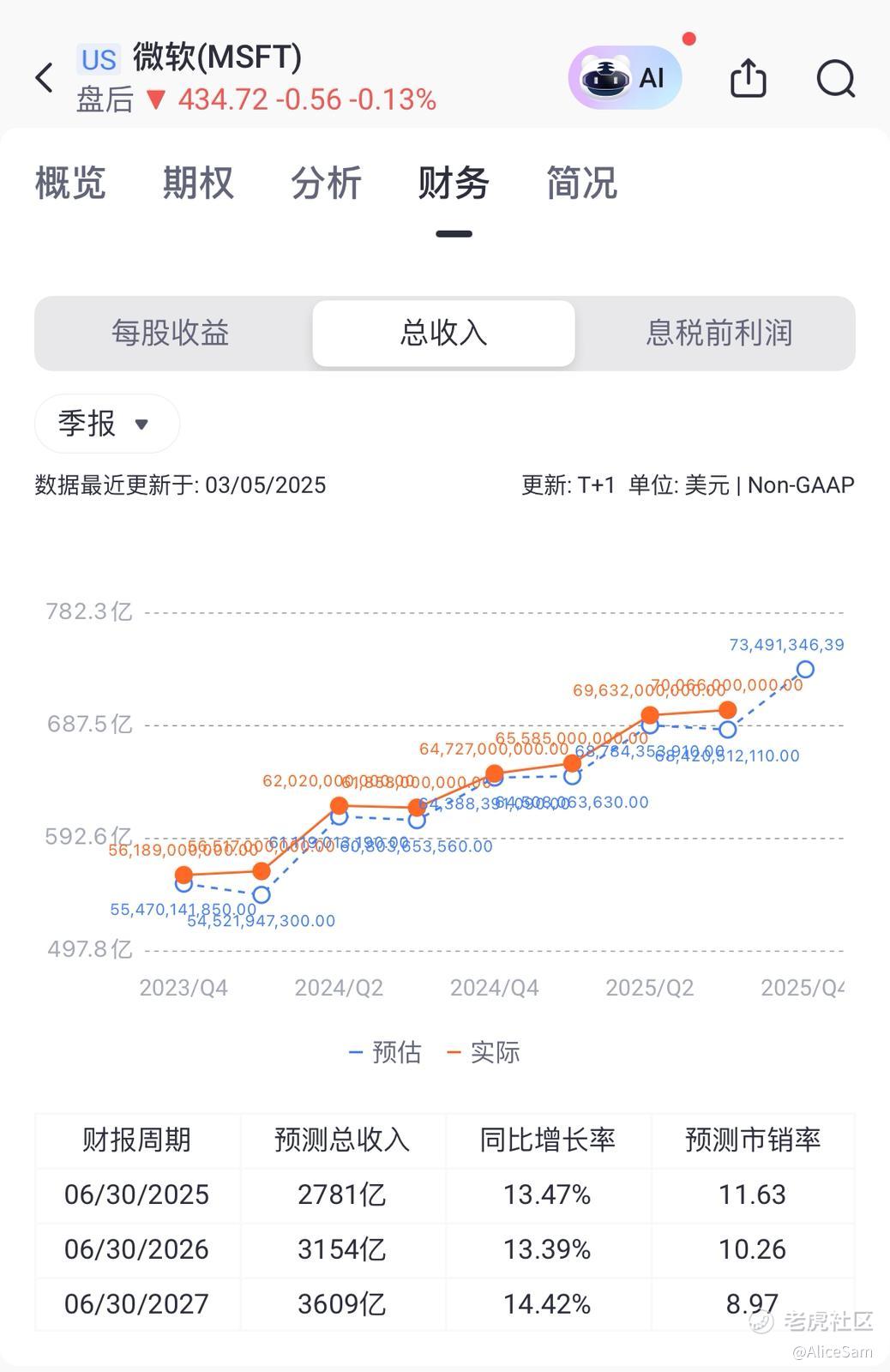一路读下来,微软在2025财年第三季度的财务表现显示出其在多个关键业务领域的强劲增长,尤其是在云服务和人工智能领域。通过持续的技术创新和市场拓展,微软不仅巩固了其在传统软件市场的领导地位,还在新兴的云服务和AI领域取得了显著进展。随着他们公司对未来的积极展望和乐观的营收指引,微软有望继续保持其在科技行业的领先地位。现在进场,应该不迟, 追高一把去 [财迷]