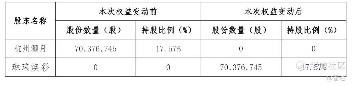 杭州灏月拟以协议转让的方式将其所持公司 70,376,745 股无限售流通股股份(占公司总股本的17.57%)全部转让给琳琅焕彩,转让价格为6.90元/股,转让价款合计4.86亿元。