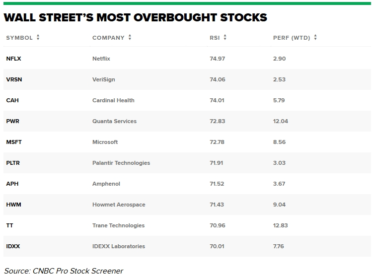 其他科技公司如Palantir(PLTR)、VeriSign(VRSN)和Netflix(NFLX),根据RSI指标也被认为被高估。