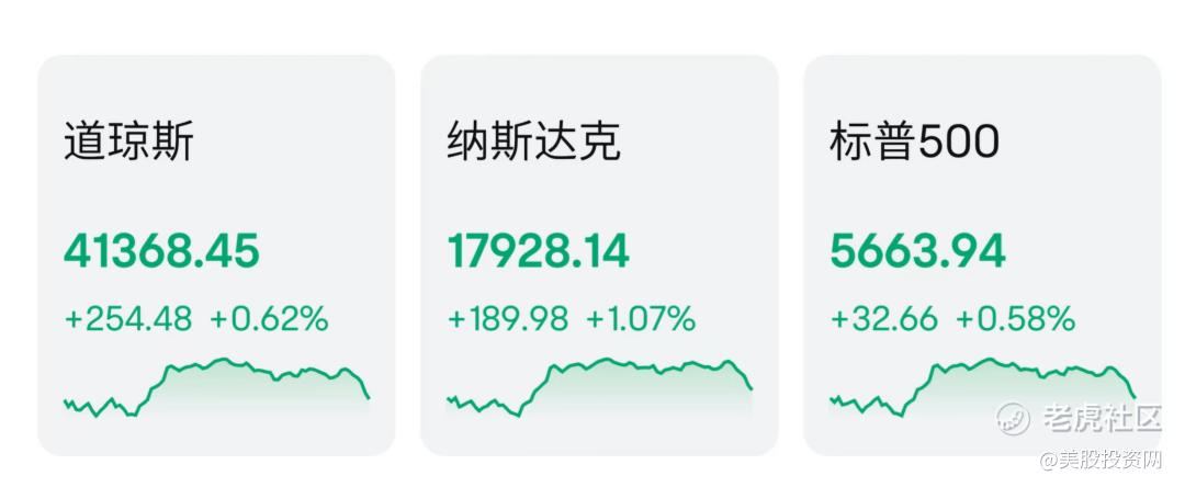 截至收盘,道指涨幅为0.62%;纳指涨幅为1.07%;标普500涨幅为0.58%。
