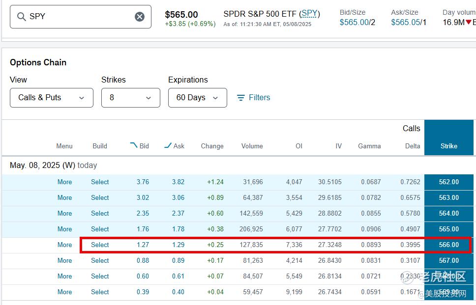 当时标普500指数ETF, $标普500ETF(SPY)$ 当天行权566的看涨期权Call才1.29美元。