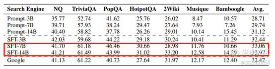 在实际测试中,ZeroSearch的表现超出了很多人的预期。研究人员在多个知名问答数据集上测试了ZeroSearch的效果,结果显示,当使用一个70亿参数的微调模型时,ZeroSearch的搜索能力达到了33.06,而使用更强的140亿参数模型时,成绩更是达到了33.97,超过了谷歌搜索的32.47。这一成绩不仅显示了ZeroSearch在搜索准确性上的突破,还表明它在处理复杂查询和生成相关内容方面,已经有了传统搜索引擎所不具备的优势。