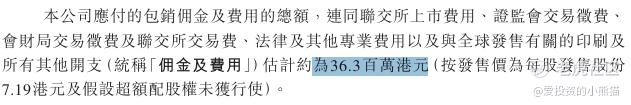 然后这个票招股书上按发售价7.19港元计算,公开的上市所有开支总额约为3630万港元,募资额约12.11亿港元,占比约3.00%,开支相比募资额算是比较少了。