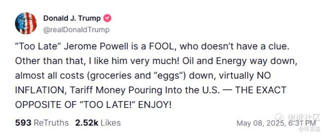 当然,川普也没打算放过鲍威尔,按照惯例又是一顿喷。