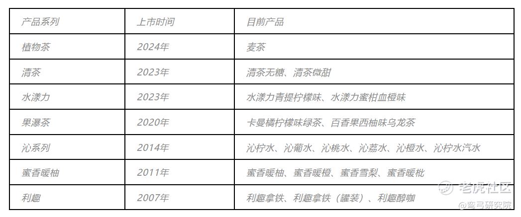 首先是在乌龙茶单品上衍生了多个款式。例如,在含糖量上有无糖及有糖区分。在风味上,除了经典乌龙茶,还融入多种花香和果香产品,推出了茉莉乌龙、桂花乌龙、橘皮乌龙等。在规格上,2023年推出具有前瞻性的1250m大包装,此外还有900ml、500ml、350ml等多种规格。