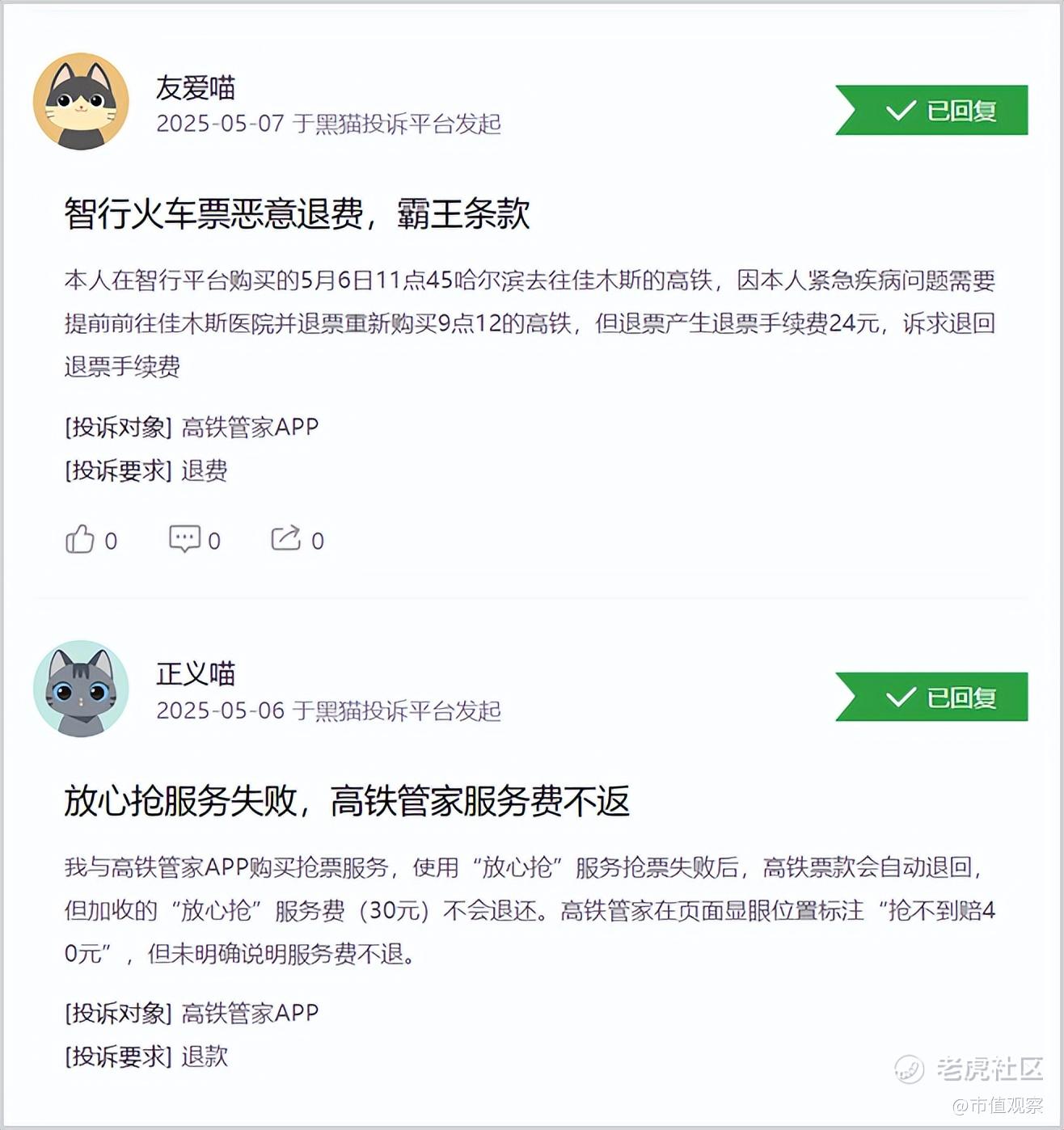 截至目前,黑猫投诉平台上,针对航班管家和高铁管家的投诉超过8000条,其中不少涉及捆绑销售和隐私滥用问题。
