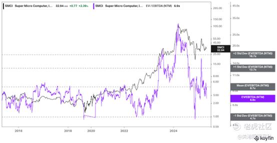 然而,鉴于该股票的波动性,底部被评估为更接近4.7 倍预期 EBITDA 倍数。换句话说,当前的市场态势表明,市场似乎对这只股票不太看空,与管理层对前瞻性展望的信心一致,认为其运营表现将有所改善。此外,超微电脑 在跌至估值低谷时所遭遇的打击,可能归因于监管申报挑战,这可能已经暂时解决。