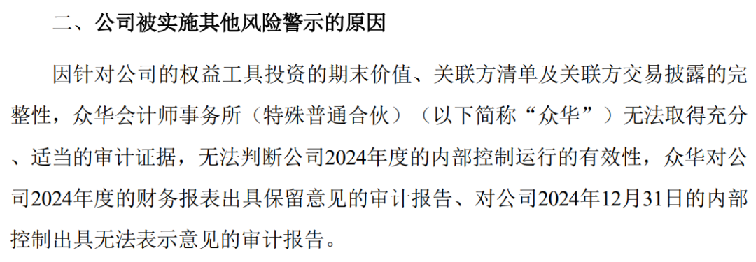 值得一提的是,此次审计机构对其2024年度财务报告及内部控制审计报告给出了非标意见,公司股票自2025年4月30日开市起停牌1天,并于2025年5月6日开市起复牌。复牌后凯利泰将被实施其他风险警示,股票简称由“凯利泰”变更为“ST凯利”。