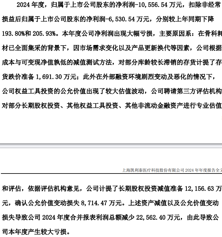2025年4月30日,凯利泰发布了2024年年报与2025年一季报。2024年,凯利泰净亏损1.06亿元,同比下降193.80%。