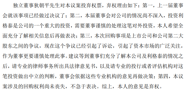 要罢免独董的大会没能被批准,独董自己反倒先撂挑子不干了。