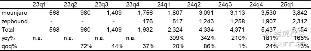 tirz total yoy +165%, 但qoq +13%,Mounjaro在美国市场的增长几乎已经触顶 (最近几家sellside也有对应下调TAM预期,想起去年夸张的有觉得至少~150b…不过路总归是一步步走,先高预期,后下调)