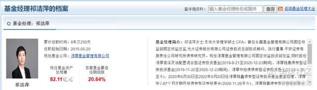 年5月20日起,祁洁萍开始加入淳厚基金,任职淳厚基金总经理助理、基金经理、固收部固收总监,管理基金的时间超过8年。