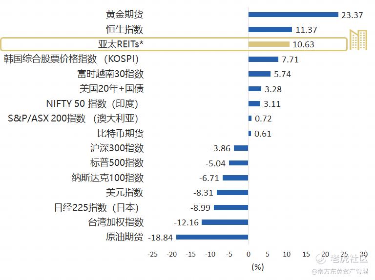今年美国关税飓风席卷全球,众多资产遭受冲击性下跌,然而亚太房地产投资信托基金(亚太REITs)表现韧性,以10.6%的年初至今涨幅领先全球市场,仅次于黄金和港股。