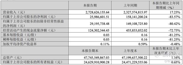 近期,锂电隔膜龙头企业恩捷股份 $恩捷股份(002812)$ 发布了2025年一季度财报,财报显示,第一季度恩捷股份实现营收27.29亿元,同比增长17.23%;净利润为2598.66万元,同比下降83.57%;扣非净利润为2919.57万元,同比下滑80.42%。