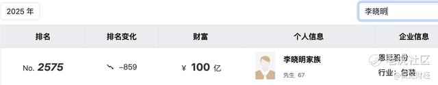 受此影响,恩捷股份实际控制人李晓明家族财富严重缩水,根据胡润2025全球富豪榜单显示,李晓明家族以100亿位列第2575名,其较2021年巅峰时期的725亿,财富缩水高达625亿元。
