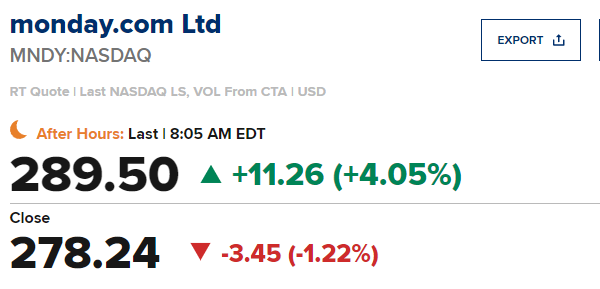 Monday.com (MNDY)第一季度每股收益为1.10美元,比市场预期值0.70美元高出0.40美元;营收同比增长30.2%至2.823亿美元,市场预期值2.7584亿美元。该公司上调了25财年业绩指引,预计25财年的营业收入为1.22亿至12.26亿美元,市场预期值12.1亿美元。