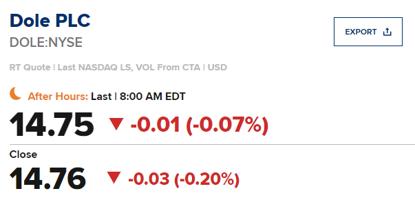 Dole plc (DOLE)第一季度每股收益为0.35美元,比两位分析师预测的0.39美元低0.04美元;营收同比下降1.0%至21亿美元,而两位分析师的预期为20.5亿美元。