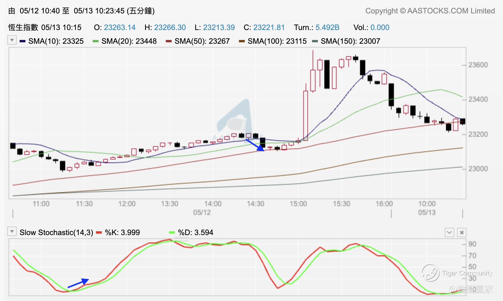 依家10点21分,五分钟图Slow STC(14.3)同指数都有开始触底上嘅样啦,加油!