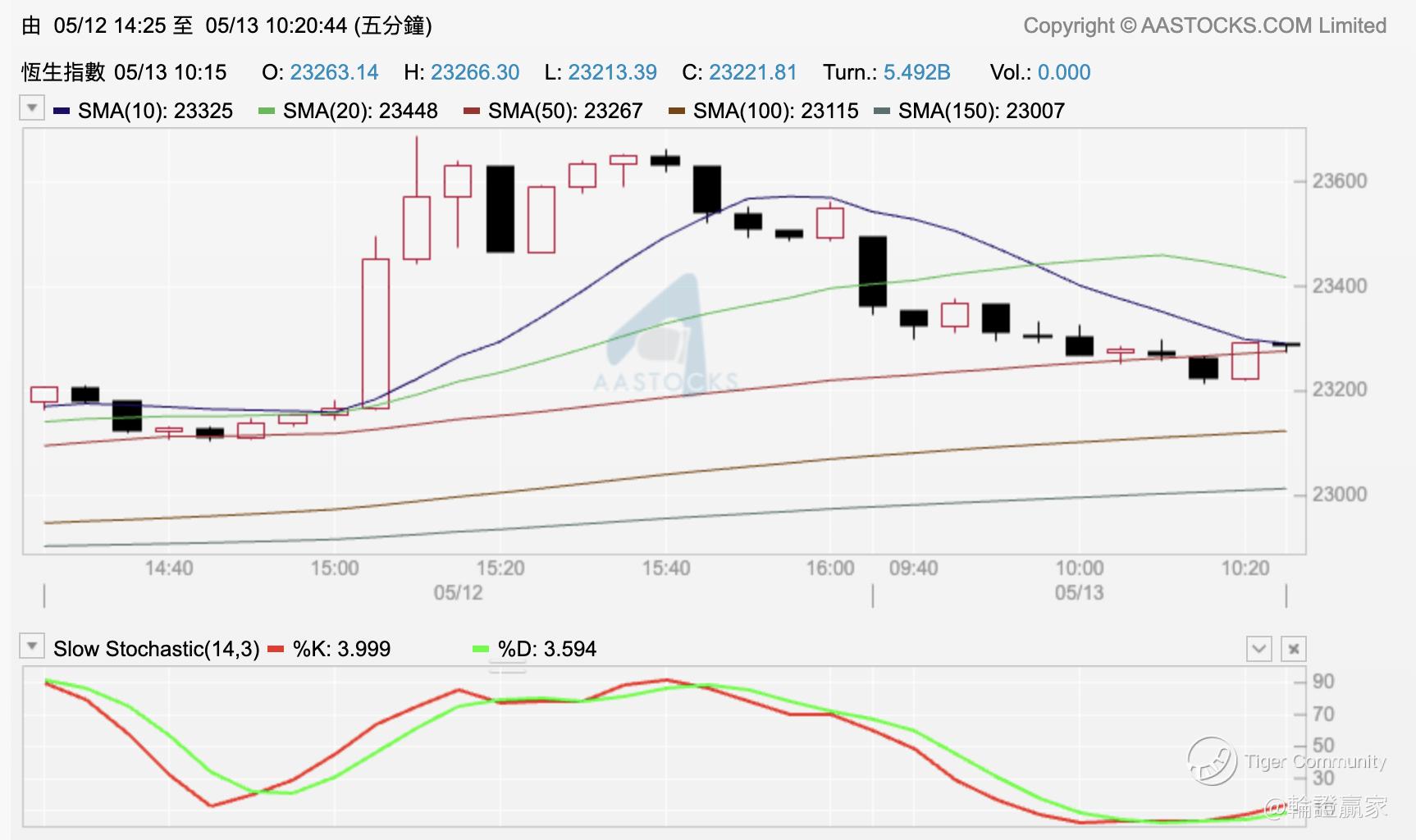 10点未到先睇咗个小时图,借埋㖊日支烛,今日有见高位出「身怀六甲」形态,同步Slow STC(14.3)两线向下,依家10线位见23097点,同指数现价都有成200点距离,不过,要指数向下踩一踩线都唔系坏事,怕嘅系佢Keep住喺高位但系粒烛再缩细嘅,高位出「三角形」嘅话,咁今朝可以先专心工作。