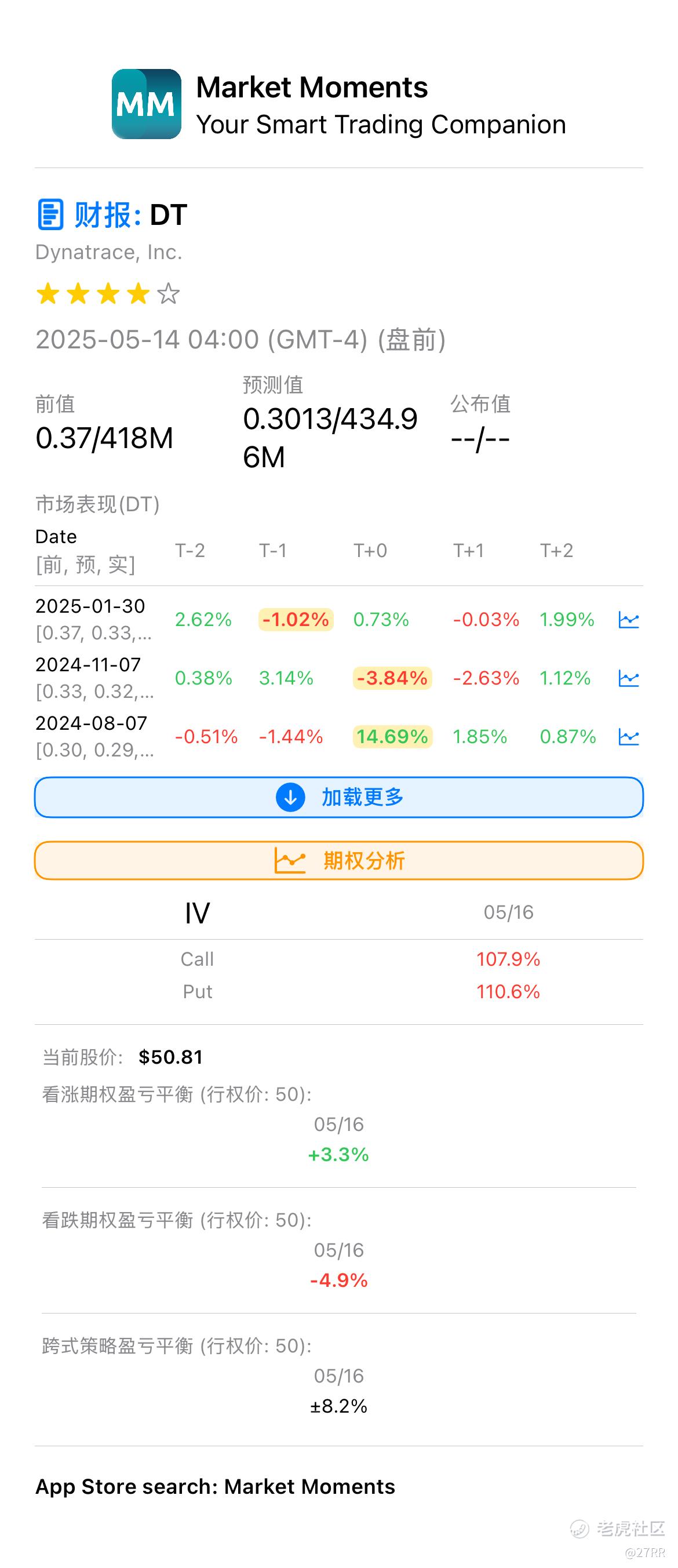 , 明天盘前发布财报,财报发布后波动通常较大,隐含波动率处于相对合理水平,或许可以考虑远期Straddle策略。