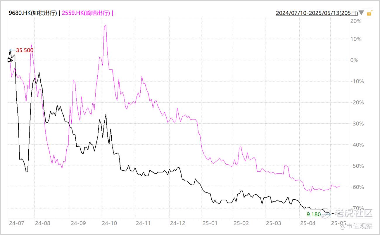 ▲嘀嗒出行VS如祺出行股价走势图,来源:Wind