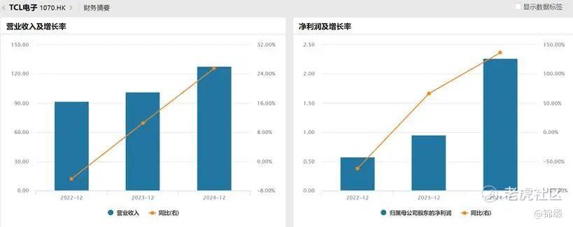 根据最新的2024年报,TCL科技业绩预告年内半导体显示业务持续向好,净利润超60亿元;另一面板龙头京东方A利润达到53亿元,同比增幅超过一倍,经营性现金流也高达477亿。
