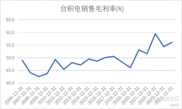 比如台积电在2019年确立全球领先半导体代工优势后,毛利率就系统性的突破45%-50%的历史区间,而且波动性也开始降低。