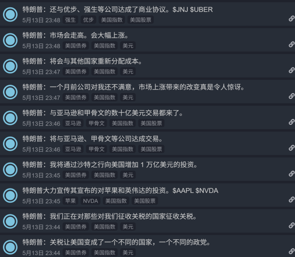 中美为期90天的贸易战休战协议提振了全球对风险资产的兴趣,如果还有自身业绩加持,[看涨][看涨][看涨]! $京东(JD)$ 实现了三年来最快的盈利增长,目前恒生指数、恒生科技指数均上涨近2%左右, $恒生指数(HSI)$ 已从4月份的低点反弹18%,收复了4月2日特朗普“解放日”以来的跌幅。AI扛把子,腾讯&阿里马上跟着就要发财报, $腾讯控股(00700)$ 在今天公布业绩前上涨超2.5%, $阿里巴巴-W(09988)$ 将于周四公布业绩,目前股价上涨超3%。