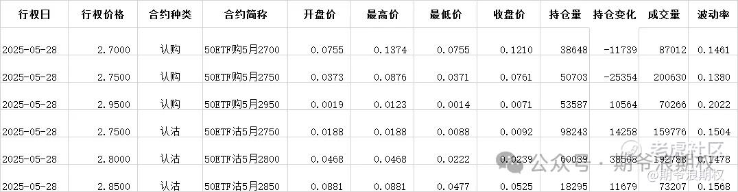 (1)50ETF期权:5月最大持仓范围2750-2800,