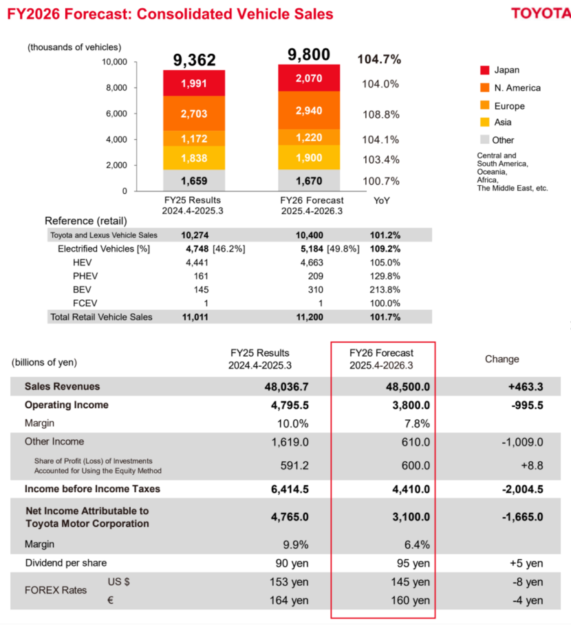 ◎ 强化股东回报:2026财年预计每股派息提高至95日元,显示出丰田对投资者信心的持续建设。