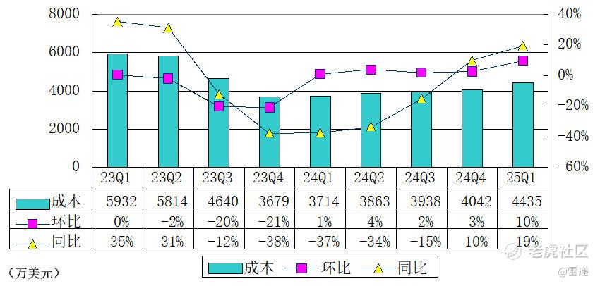 迅雷2025年第一季度成本为4435万美元,较上年同期的3714万美元增长19%。