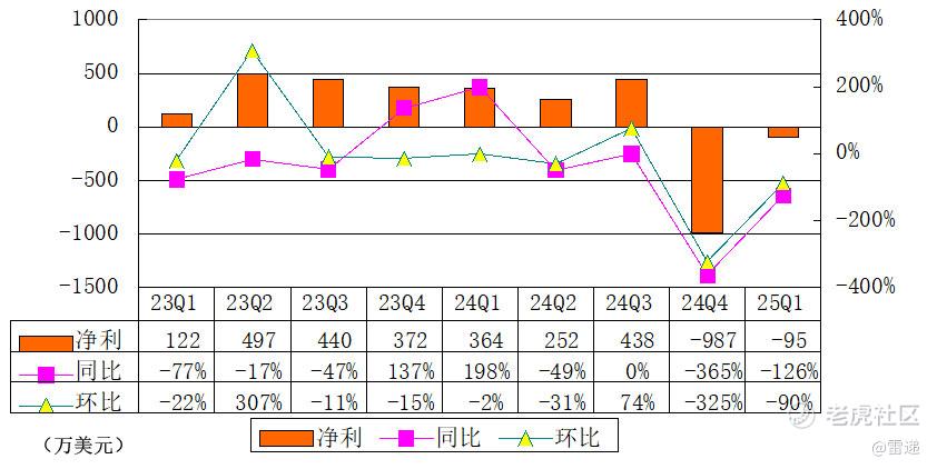 迅雷2025年第一季度净亏损为95万美元,上年同期的净利为360万美元。