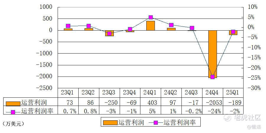 迅雷2025年第一季度运营亏损为190万美元,上年同期为运营利润400万美元。