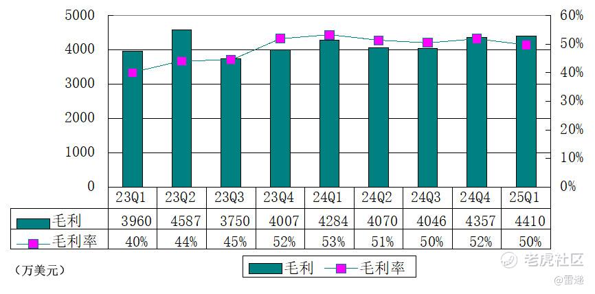 迅雷2025年第一季度毛利为4410万美元,较上年同期增长2.9%;迅雷2025年第一季度毛利率为49.7%,上年同期的毛利率为53.3%。迅雷毛利润增长主要得益于海外直播服务和会员服务所产生毛利增加。