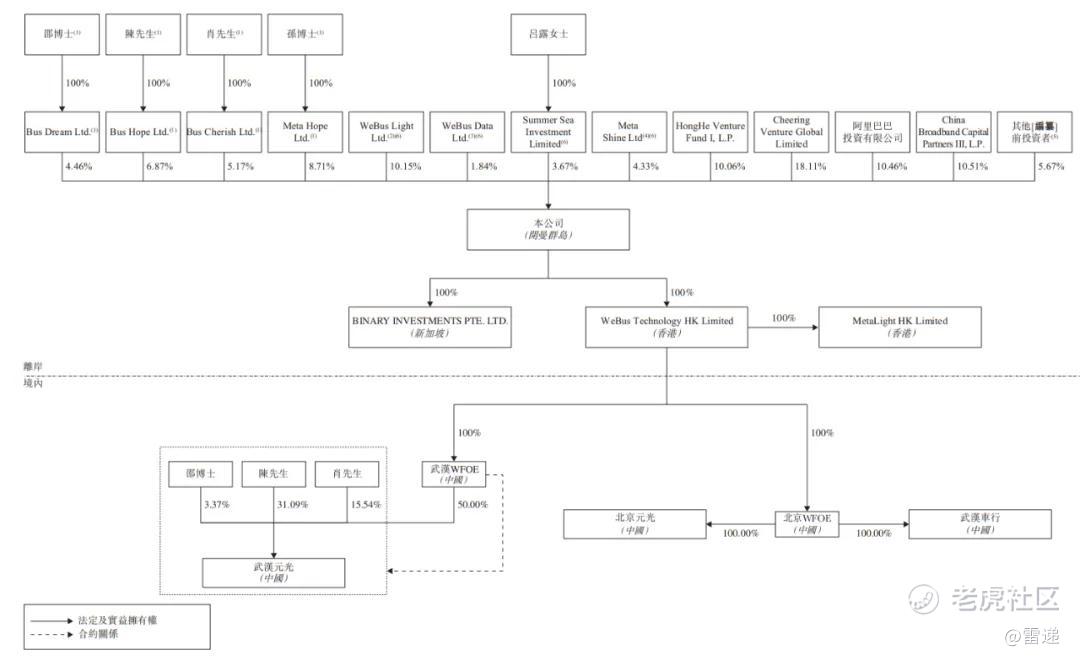 IPO前,陈晓持股为6.87%,肖平原持股5.17%,孙熙博士持股8.71%,WeBus Light持股为10.15%,WeBus Data持股为1.84%,吕露持股3.67%,Meta Shine持股为4.33%;