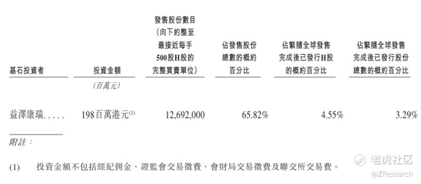 1名基石投资者:益泽康瑞医药(香港)有限公司认购1.98亿港元,由具有杭州国资背景的拱墅投资拥有。按照发行价15.6港元计算,相当于此次全球发售股份的65.82%及紧随全球发售完成后已发行总股份的3.29%。