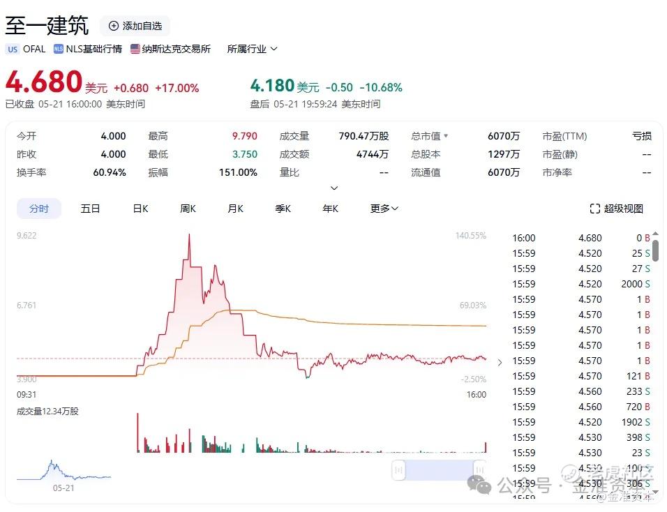 至一建筑在纳斯达克上市,股票代码为OFAL。