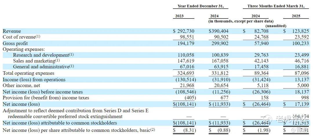 Hinge Health在2025年第一季度营收为1.24亿美元,较上年同期的8271万美元增长49.7%;运营利润为1314万美元,上年同期的净亏损为3142万美元;净利为1714万美元,上年同期的净亏损为2646万美元。