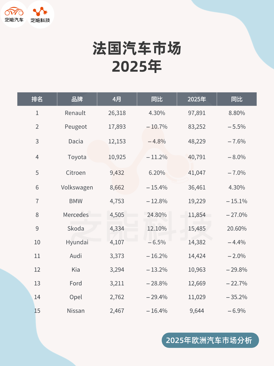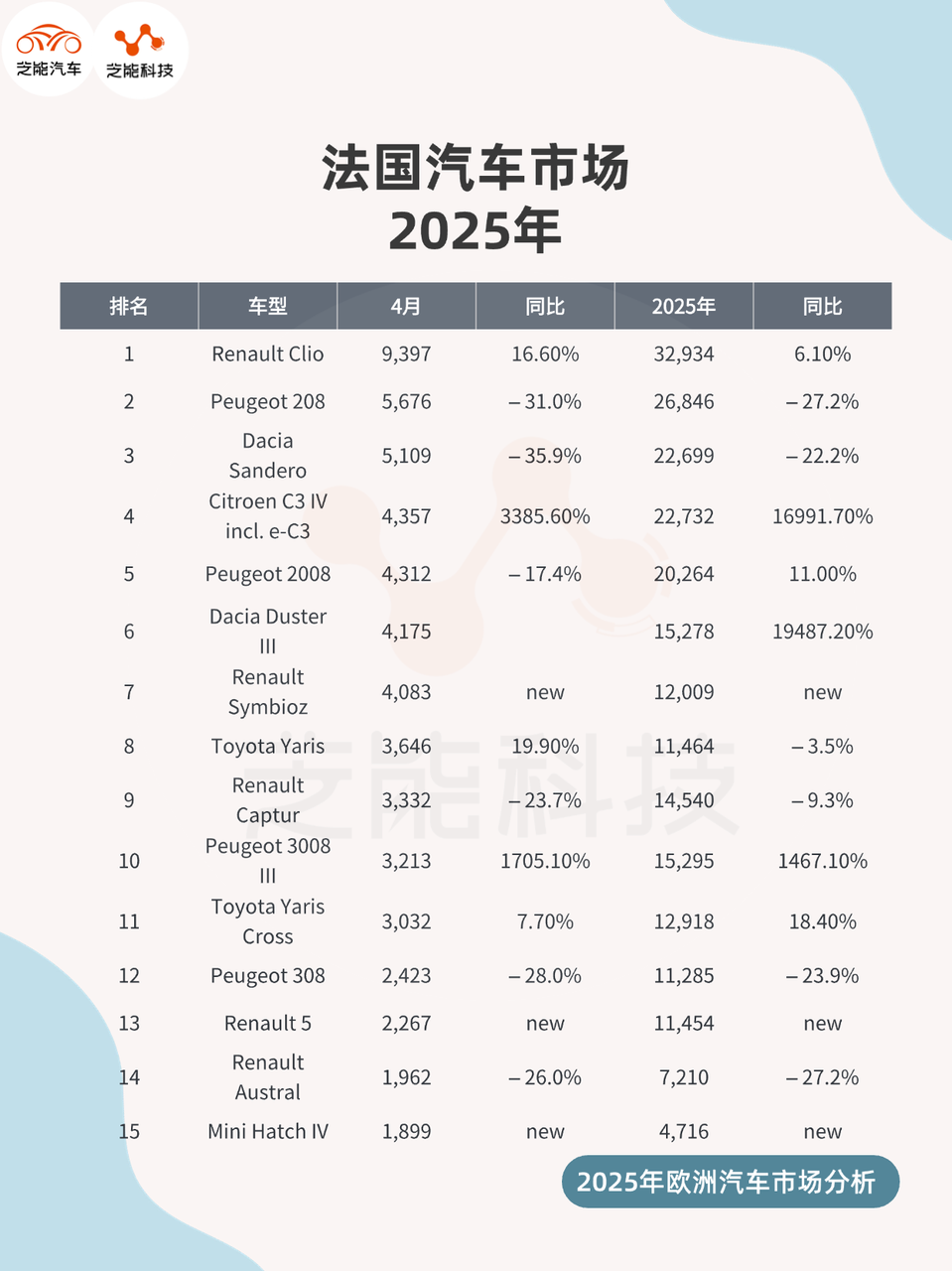 欧洲车市 |法国2025年4月:车市寒潮下,中国品牌逆势突围